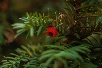 What is the lore on the poisonous or medicinal properties of the yew tree? Culpeper’s Complete Herbal & English Physician (1826) states “Many in this country have eaten yew berries and survived. The tree’s very powerful poisonous qualities rise by distillation.” He goes on to say that, despite these qualities, yew berries are “sometimes given usefully in obstructions of the liver and bilious complaints.” In The Complete Book of Herbs, Lesley Bremness notes that all parts of the English yew are poisonous, yet a homeopathic tincture made from the leaves and berries is used medicinally. In the homeopathic literature, the bark, branch tips, and needles of the yew are used to treat diphtheria, tapeworms, tonsillitis, liver conditions, and rheumatism.